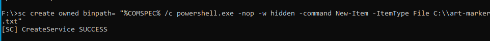For the next example, suppose we discovered a widespread infection within our network. Typically, the malware installs various methods of re-infecting a host, and a common way is to install a malicious service (See Att&ck Matrix 1035 ). The Atomic Red Team has an example simulation :