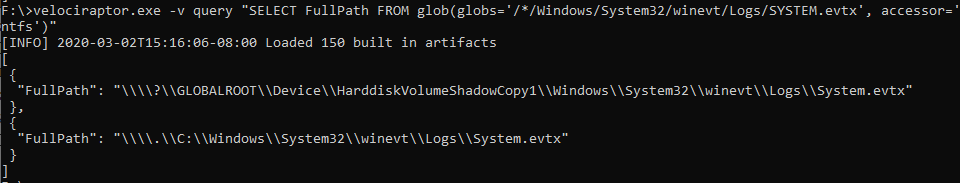 device. Velociraptor allows the VSS copies to be enumerated by listing