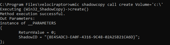 C:\Users\test>fsutil file setshortname velociraptor.exe runme.exe