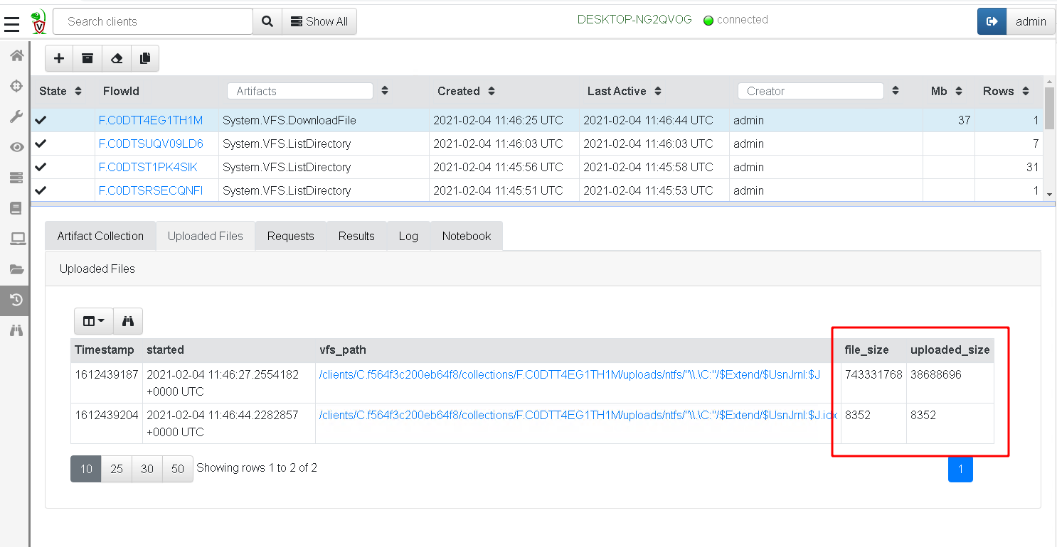 SELECT upload(path="C:/$MFT", accessor="ntfs")